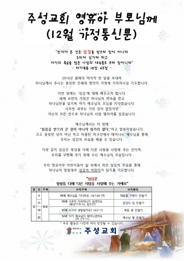 12월 영유아예배 교육계획안